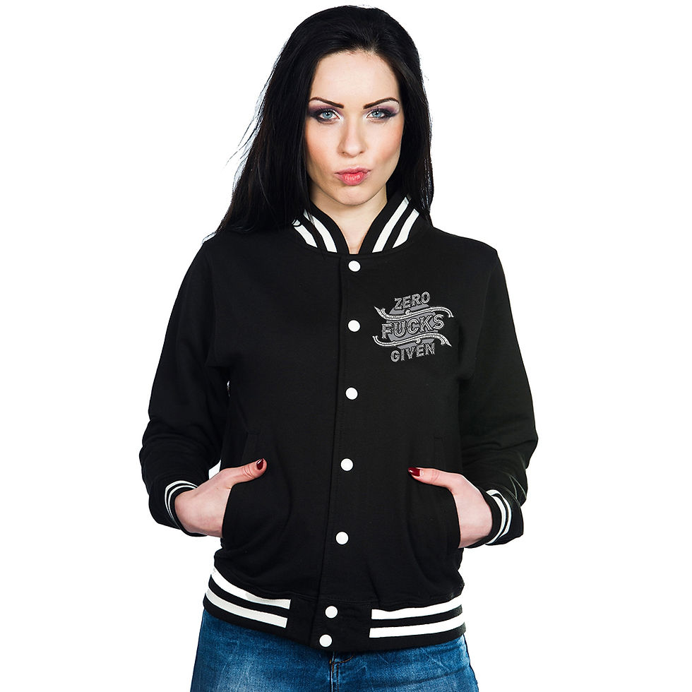Women`s Collage Baseball Jacket Zero Fucks Given