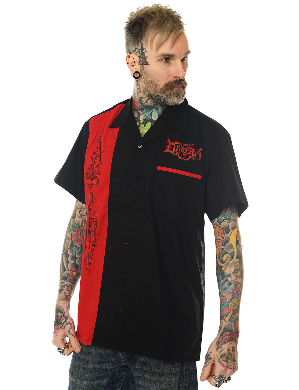 Mens Bowling Shirt Pinstrip Design red